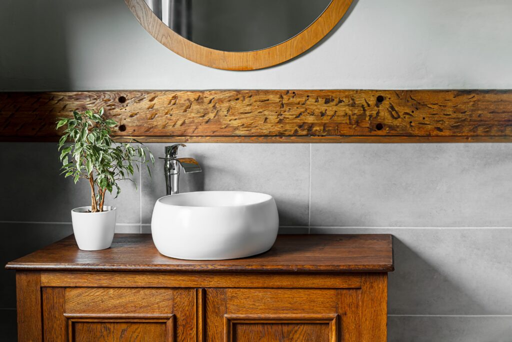 - Lemn tratat pentru rezistență la umezeală: Ideal pentru blaturi, rafturi sau accente decorative.