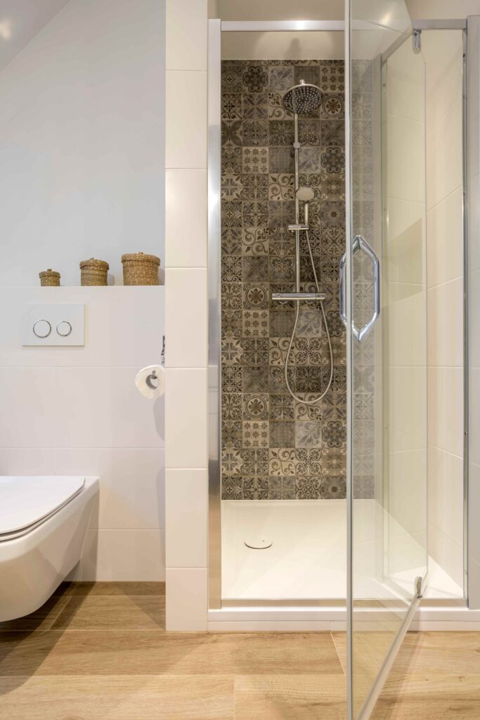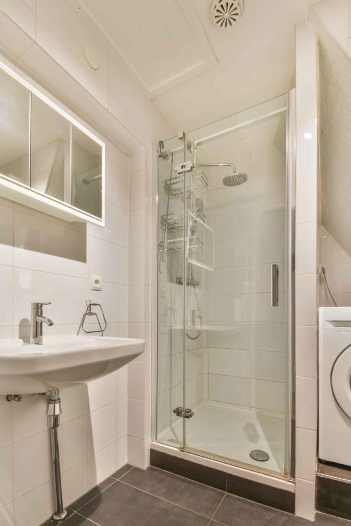- Optează pentru cabine de duș fără tăviță sau cu uși glisante.