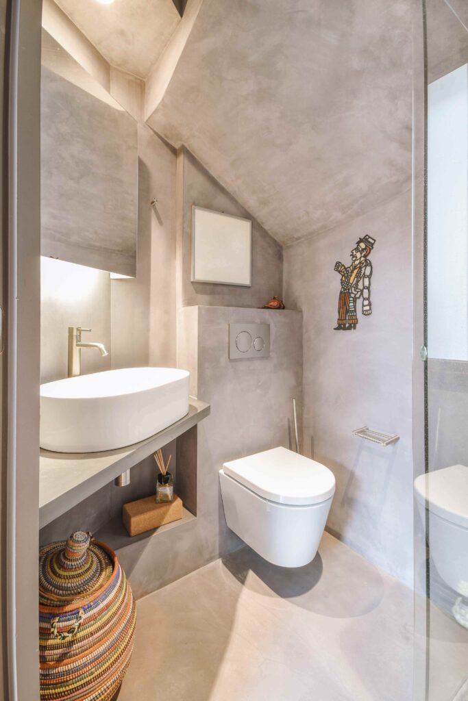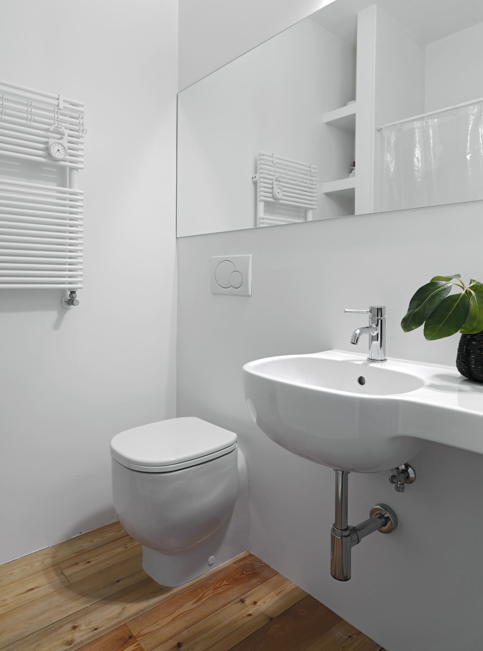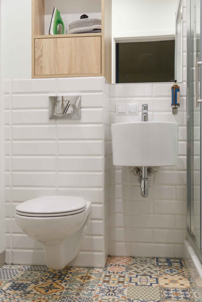 - Instalarea unor obiecte sanitare compacte: lavoare suspendate sau vase de WC montate pe perete.