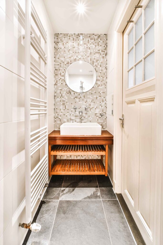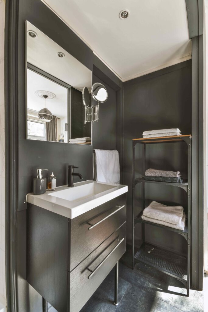 - Integrează spații de depozitare în mobilierul de bază, cum ar fi dulapuri sub lavoar.