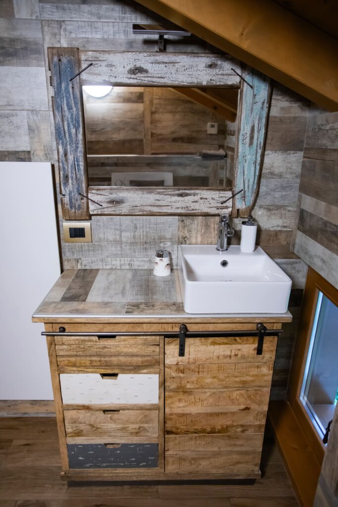 - Amenajarea în stil rustic pentru a accentua caracterul casei, folosind lemn tratat pentru rezistență la umiditate.