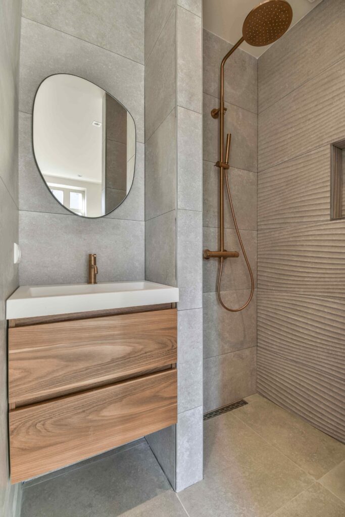 - Optarea pentru cabine de duș walk-in cu uși glisante sau perdele transparente, pentru a economisi spațiu.