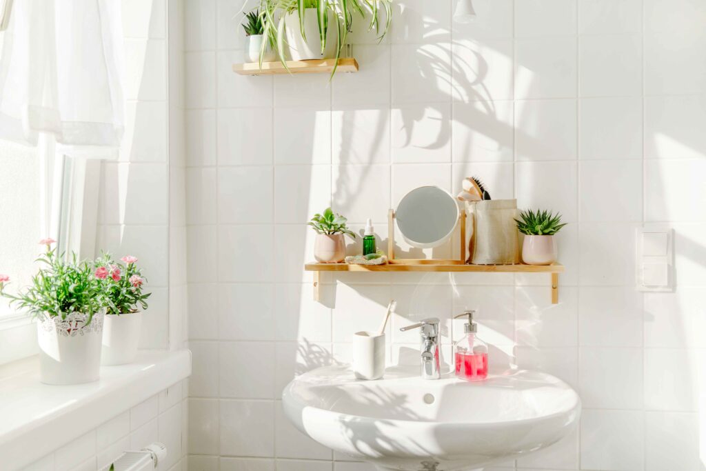 - Plante mici rezistente la umiditate, cum ar fi ferigi sau aloe vera, pentru a adăuga un strop de prospețime.